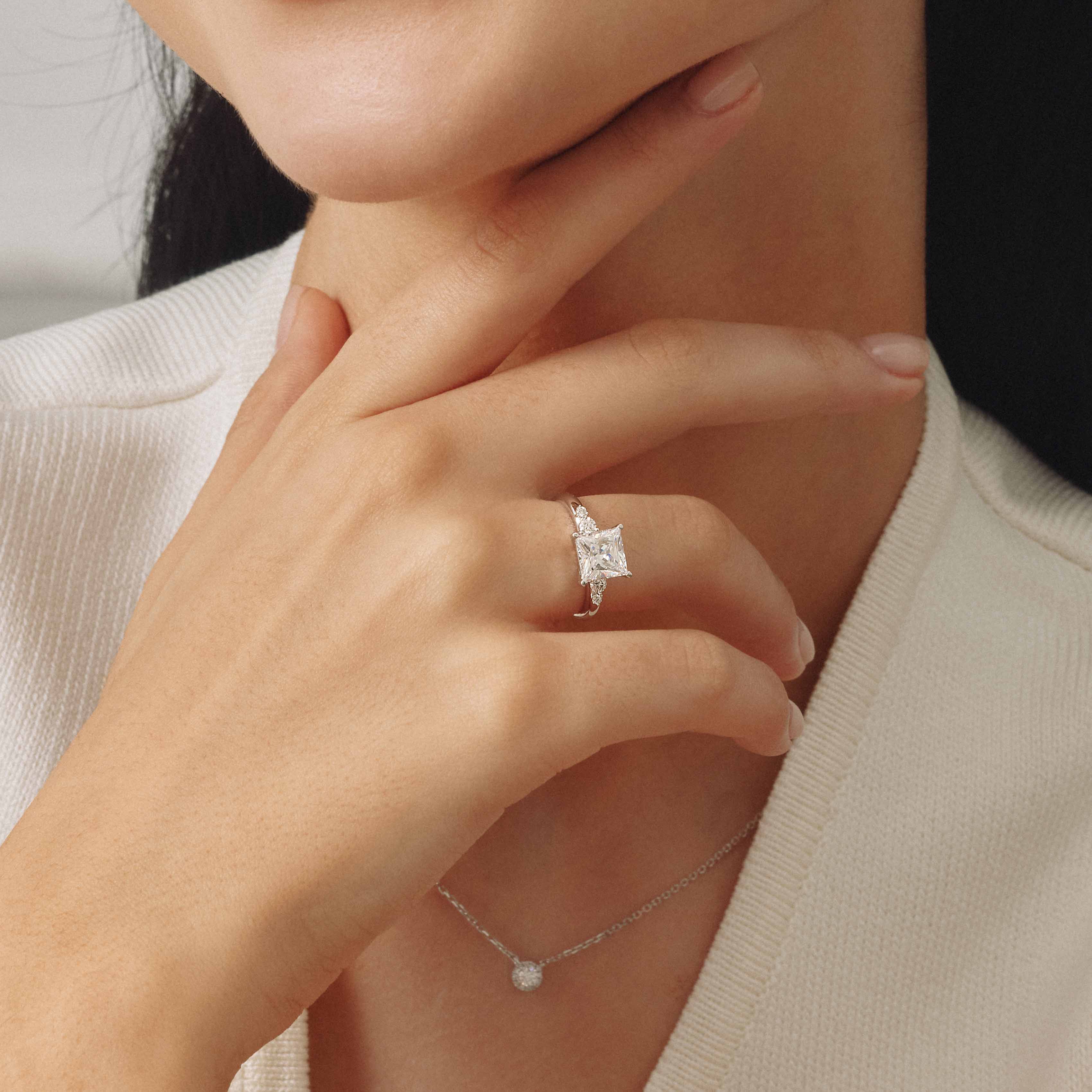 Lab Grown Side-stone Engagement Ring
