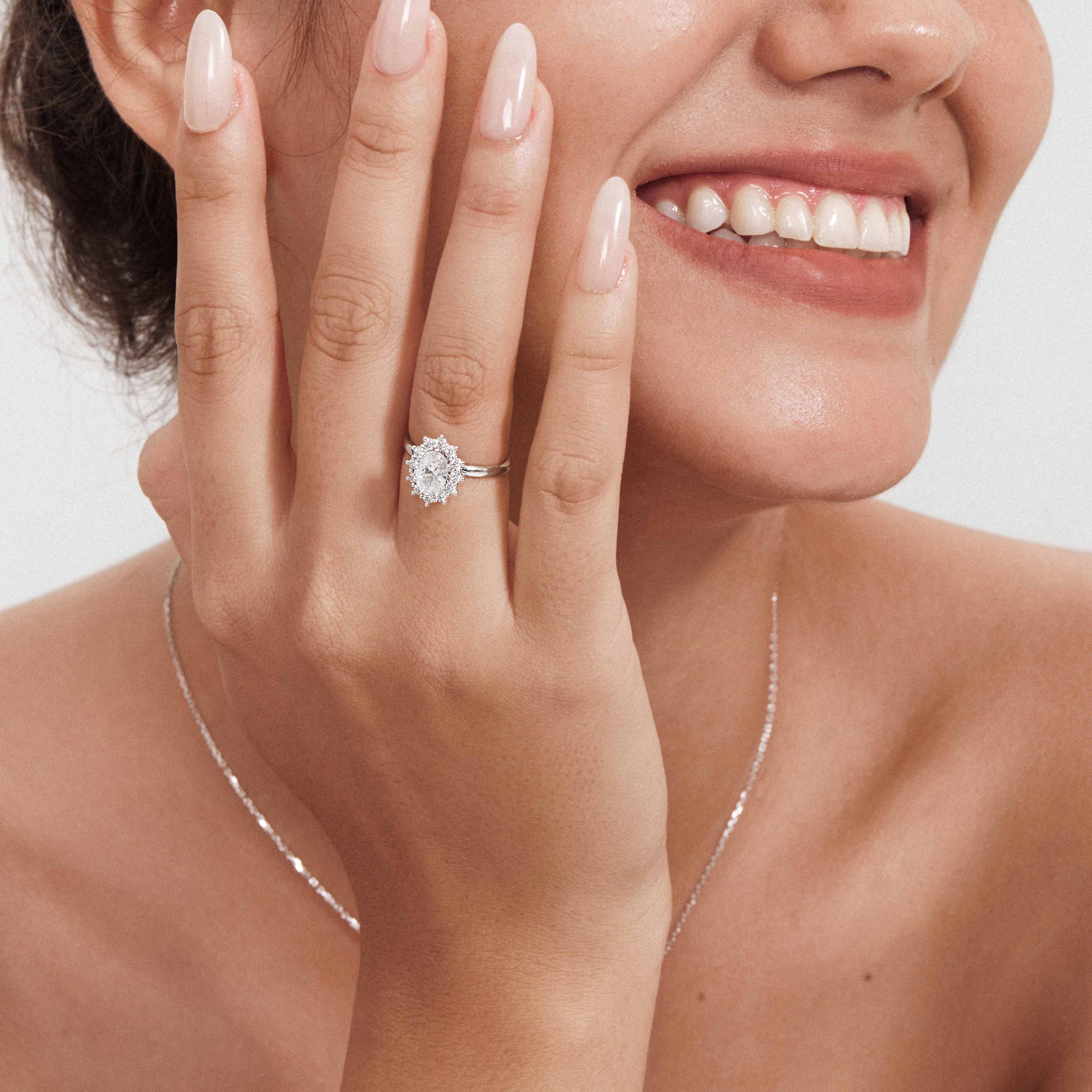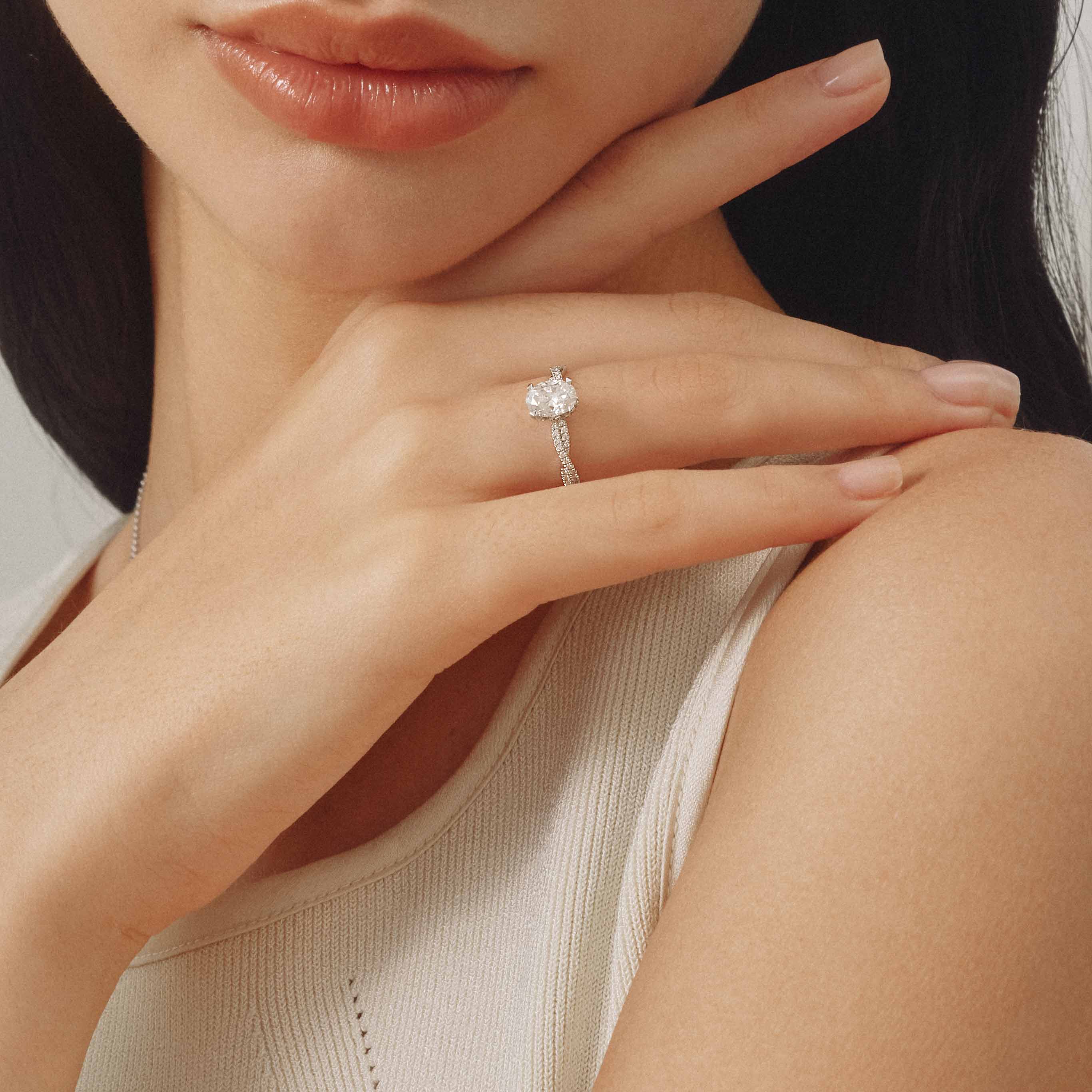 Lab-Grown Oval-cut Wreath Simple Engagement Ring