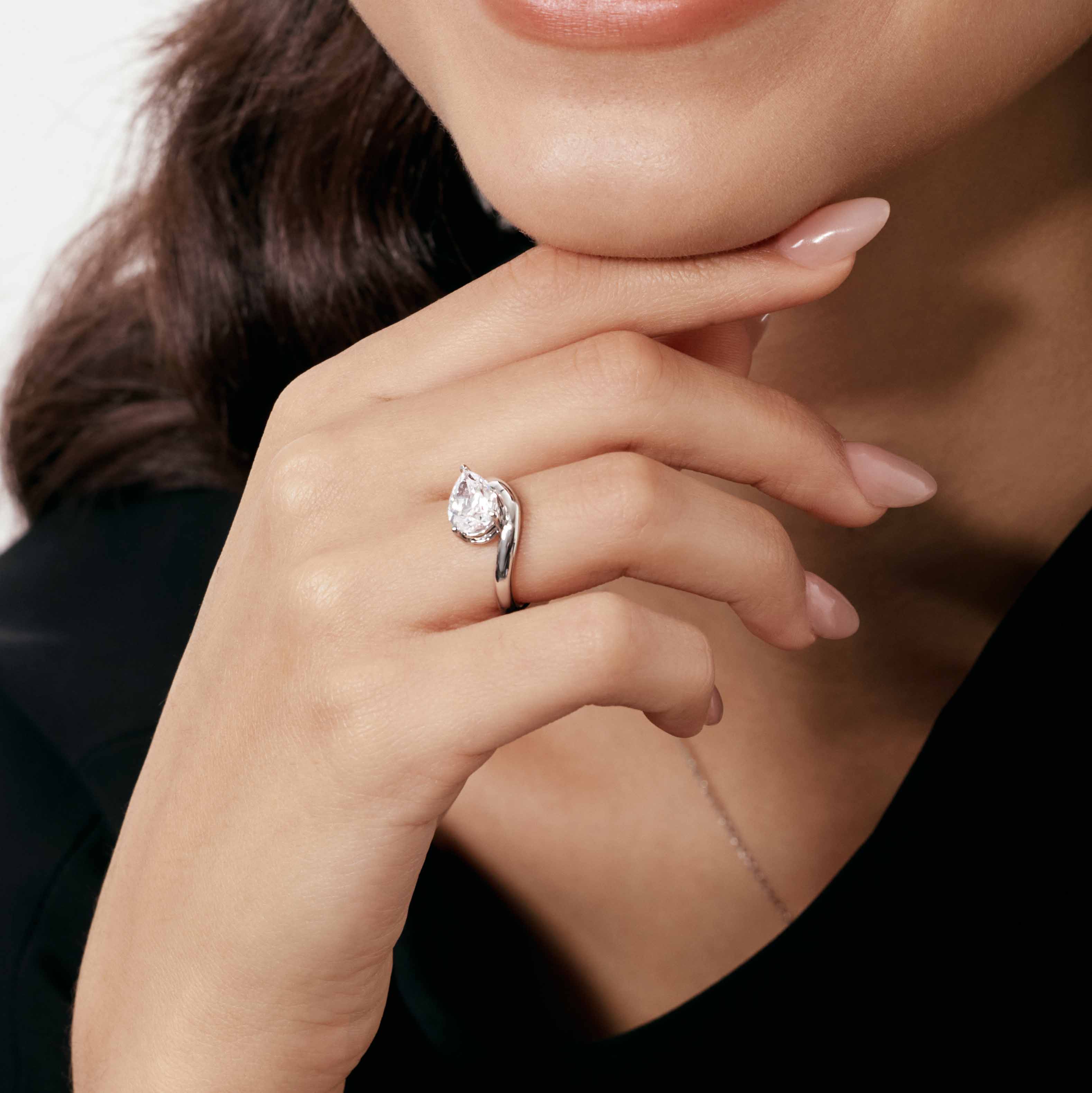 Pear Lab Grown Diamond Wave Solitaire Engagement Ring