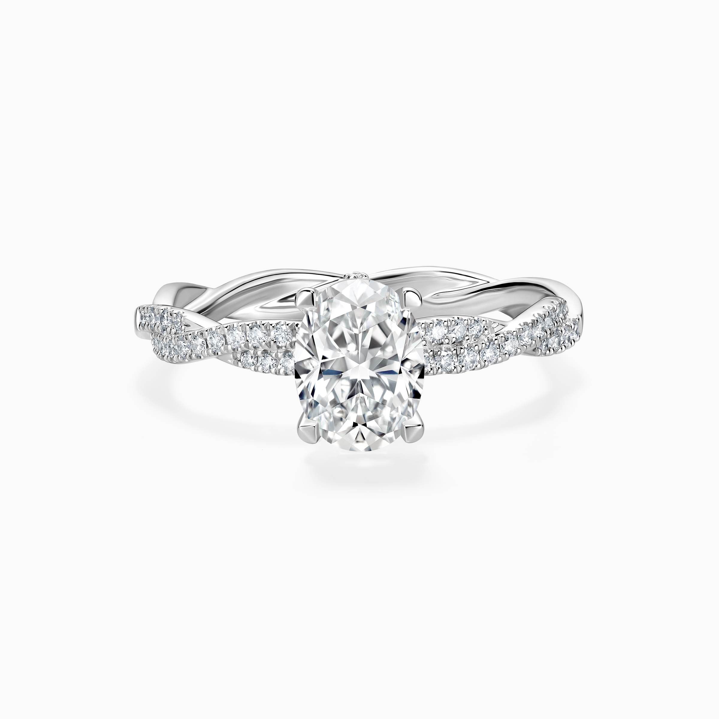 Experience classic romance with our stunning oval-cut lab-grown diamond twisted engagement ring. A sparkling oval-cut lab-grown diamond is securely held in a prong setting. Its unique twisted design on the band exudes elegance and sophistication, encrusted with small, dazzling lab-grown diamonds that enhance the overall charm. Darry Ring is devoted to crafting symbols of deep, meaningful connections, marking a commitment that transcends time.