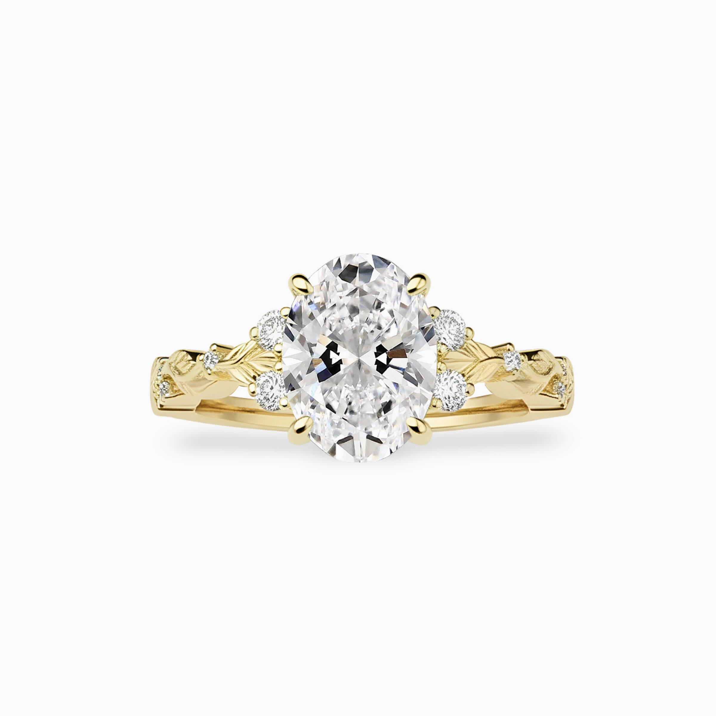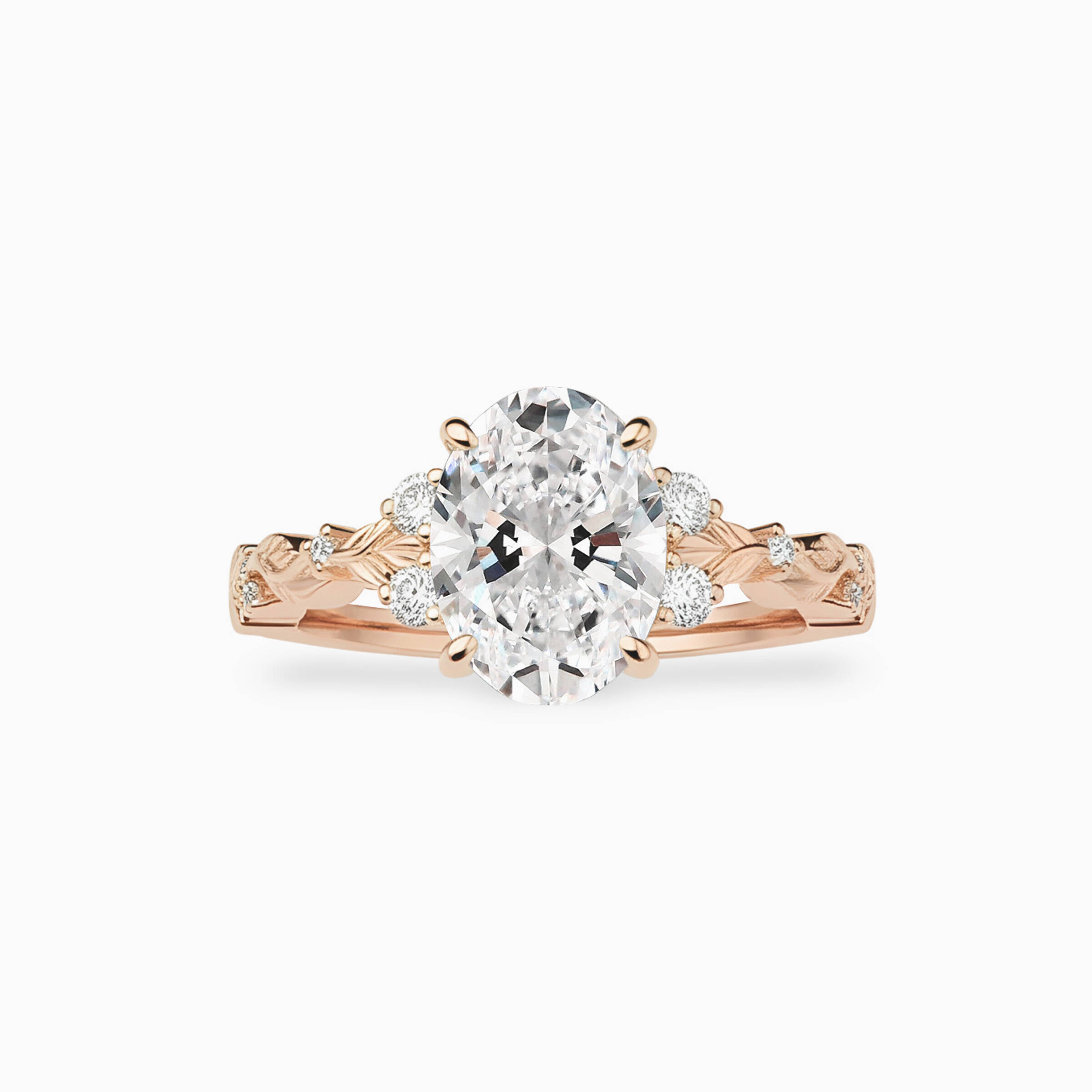 Defined by its ethereal beauty, this ring combines a stunning oval lab-grown diamond center stone with delicate leaf accents along the band. The organic curves naturally complement the hand, offering a look of refined elegance from every angle.