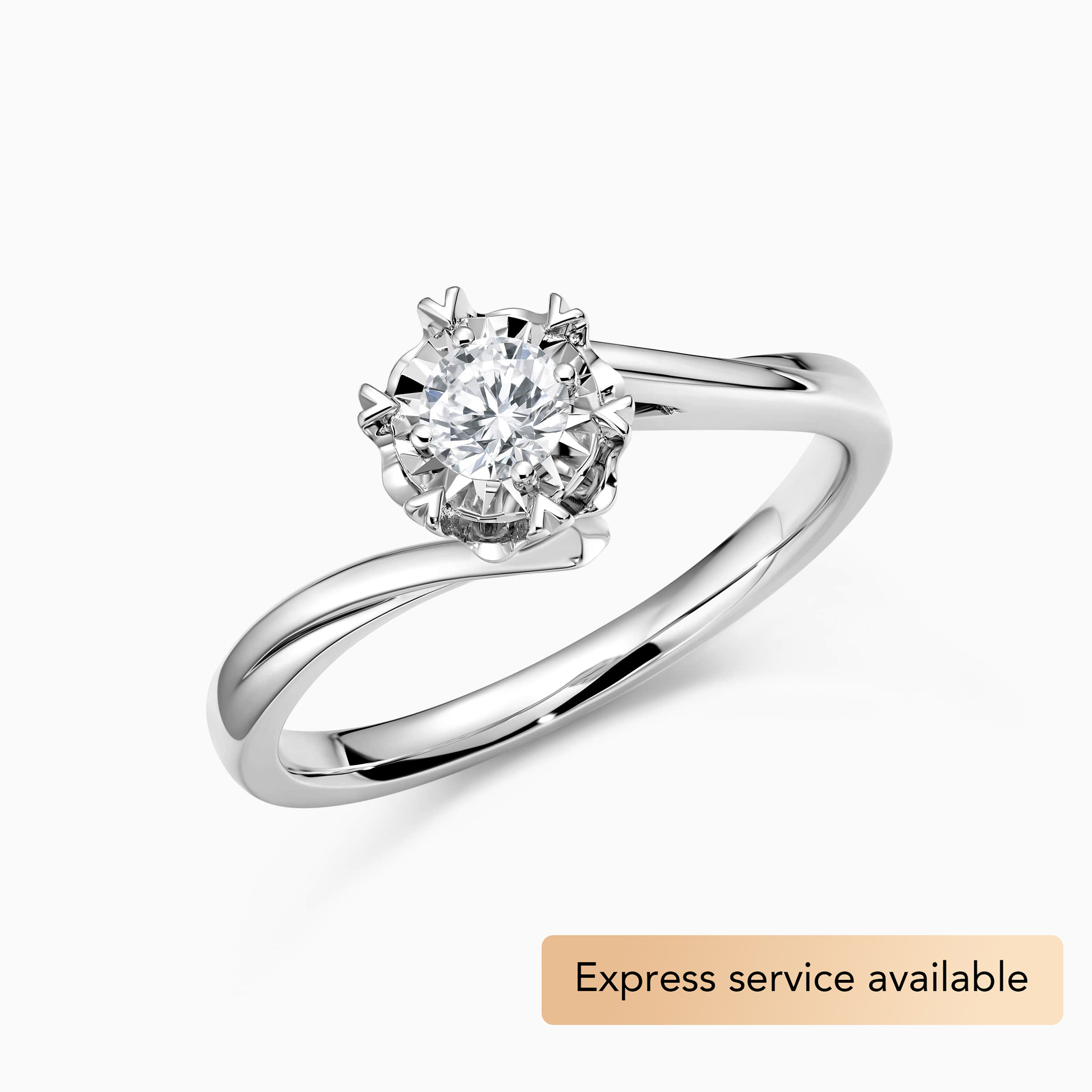 Round Solitaire Affordable Floral Bypass Engagement Ring
