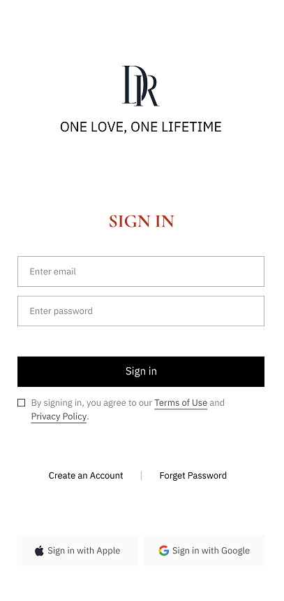 - If you are new to DR, tap Create an Account first, then enter your email address and other registration information.