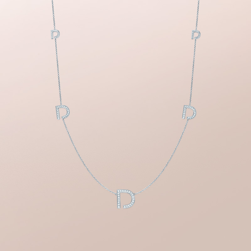 Five Open D Shaped Diamonds Pavé Long Necklace