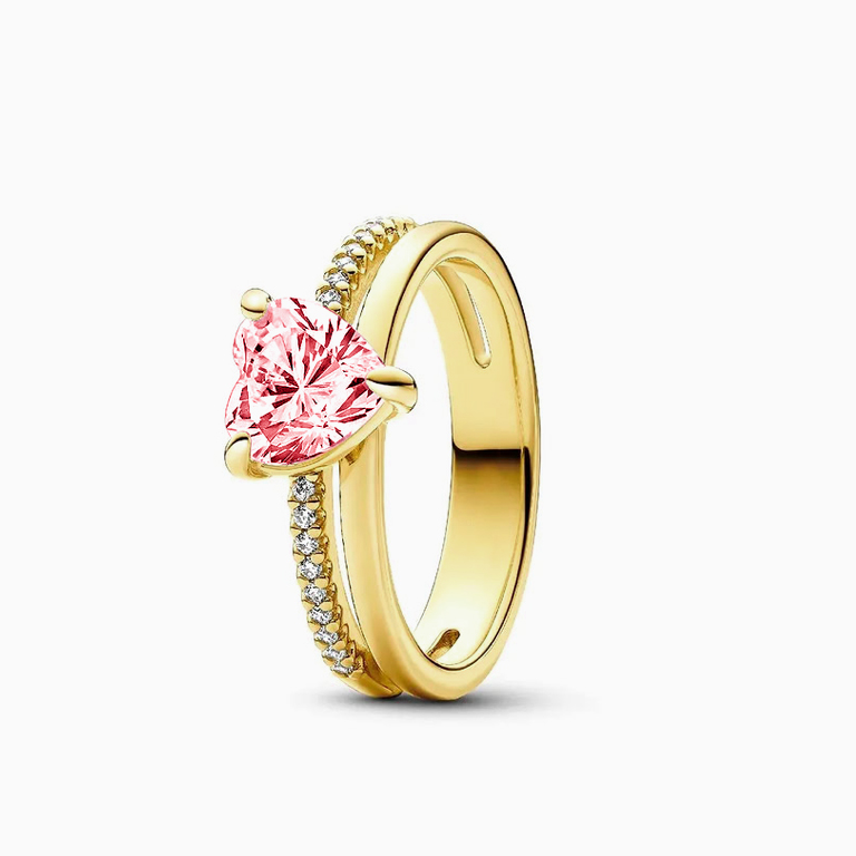 Dazzling V-Shape Pink Heart Zirconia Promise Ring