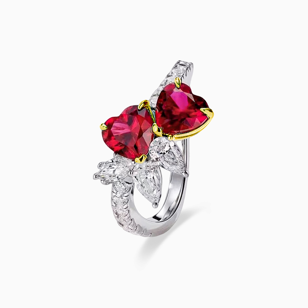 Cluster Heart-Shape Moissanite Open Promise Ring
